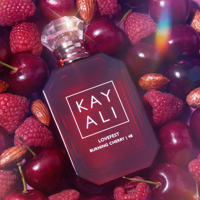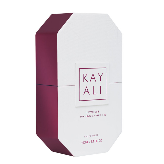 Lovefest Burning Cherry | 48 Eau de Parfum by Kayali Fragrances is a Oriental Woody fragrance for women and men. Lovefest Burning Cherry | 48 Eau de Parfum was launched in 2022. Lovefest Burning Cherry | 48 Eau de Parfum was created by Gabriela Chelariu and Philippine Courtière. Top notes are Burning Cherry, Raspberry and Bergamot; middle notes are Praline, Heliotrope, Damask Rose and Jasmine Sambac; base notes are Palo Santo, Tonka Bean, Guaiac Wood, Peru Balsam, Ambrettolide, Patchouli and Haitian Vetiver.