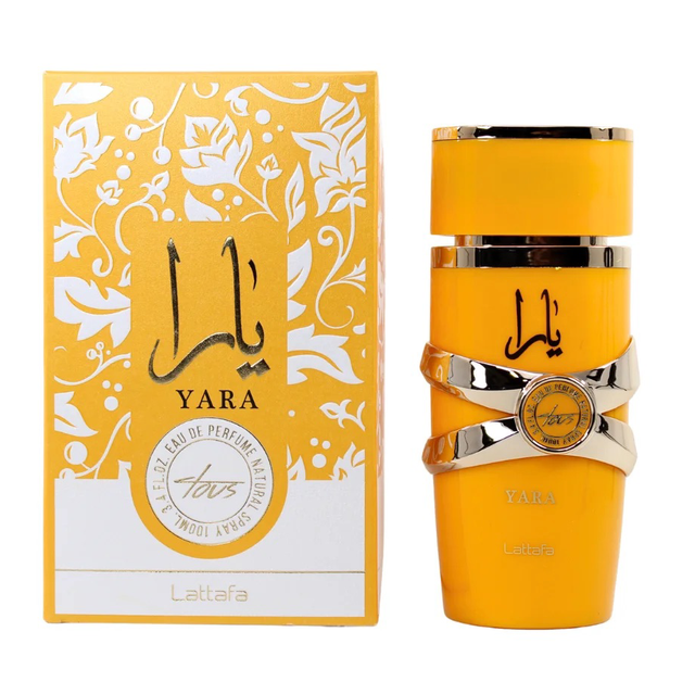 Yara Tous by Lattafa Perfumes is a fragrance for women. This is a new fragrance. Yara Tous was launched in 2023. Top notes are Mango, Coconut and Passionfruit; middle notes are Jasmine, Orange Blossom and Heliotrope; base notes are Vanilla, Musk and Cashmeran.